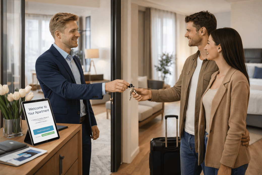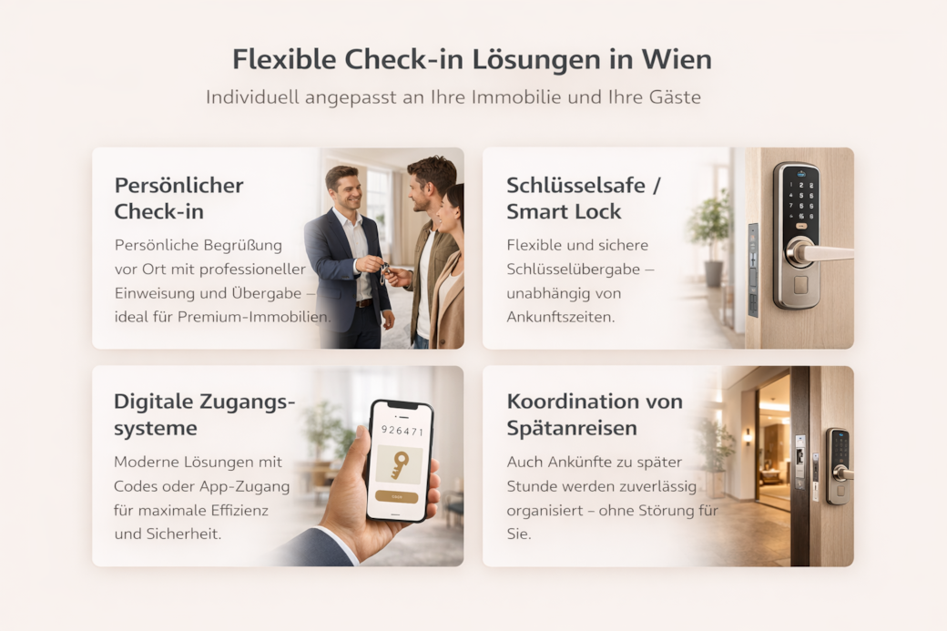 Durch schnelle Reaktionszeiten, klare Abläufe und eine persönliche, freundliche Betreuung sorgen wir für zufriedene Gäste und stressfreie Abläufe. Ob Check-in-Koordination, digitale Zugangslösungen oder Unterstützung während des Aufenthalts – wir stehen Ihren Gästen rund um die Uhr zur Verfügung und vertreten Ihre Unterkunft professionell in Ihrem Namen.