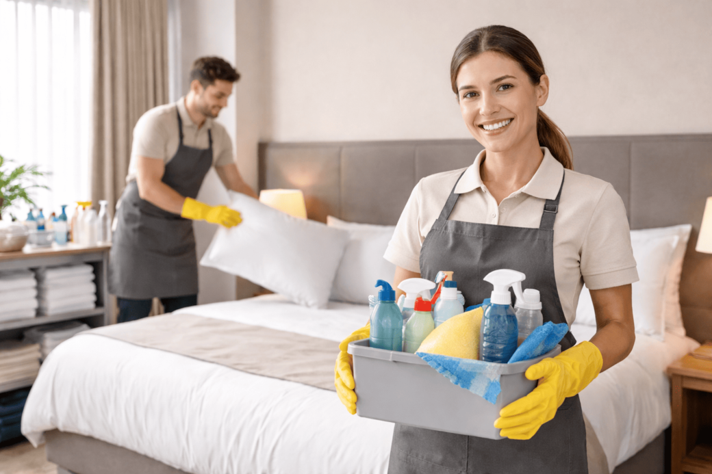 Unser Reinigungsteam bereitet jede Unterkunft sorgfältig für den nächsten Gast vor – von der Reinigung aller Wohnbereiche bis zur Vorbereitung von Bad, Küche und Schlafbereichen. Durch feste Checklisten und eingespielte Prozesse stellen wir sicher, dass jede Immobilie konstant auf einem hohen Qualitätsniveau präsentiert wird.